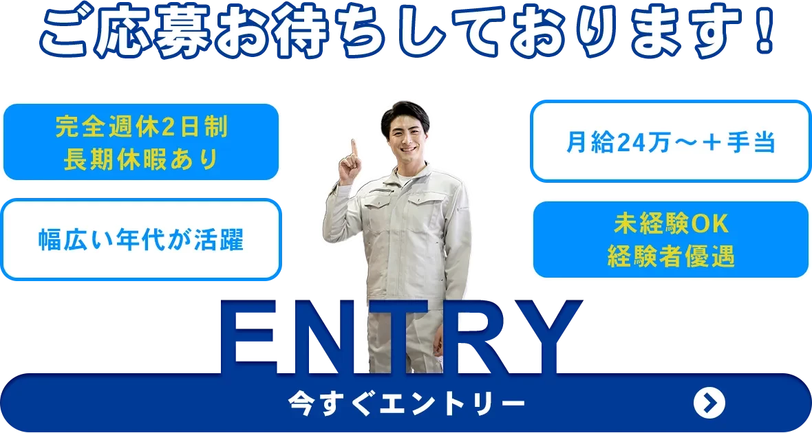 社保完備はもちろん、退職金制度もございます。手当は、通勤手当・残業手当・休日手当・役職手当があり、基本的なものはすべて網羅しています!